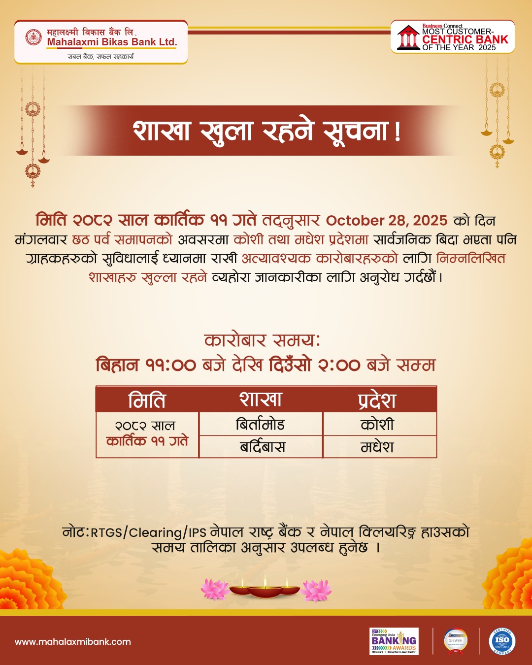 “सबल बैंक, सफल सहकार्य” को नारालाई आत्मसाथ गर्दै नेपाली जनताको घरदैलोमा विगत २८ वर्षदेखि अनवरत रुपले सरल, सहज र गुणस्तरिय वित्तीय सेवा प्रदान गर्दै आइरहेको बैंकले आगामी दिनहरुमा पनी संस्थागत सामाजिक उत्तरदायित्वका कार्यहरुलाई थप प्रभावकारी रुपमा निरन्तरता दिने जनाएको छ। विगतदेखि नै ग्राहकको आम्दानीमा उच्च प्रतिफल दिन प्रतिबद्घ रहिआएको बैंकले आमग्राहकको बैंकिङ आवश्यकता, चाहना तथा अपेक्षालाई मध्यनजर अझै थप गुणस्तरीय वित्तीय सेवा प्रदान गर्ने प्रतिबद्घता जनाएको छ।