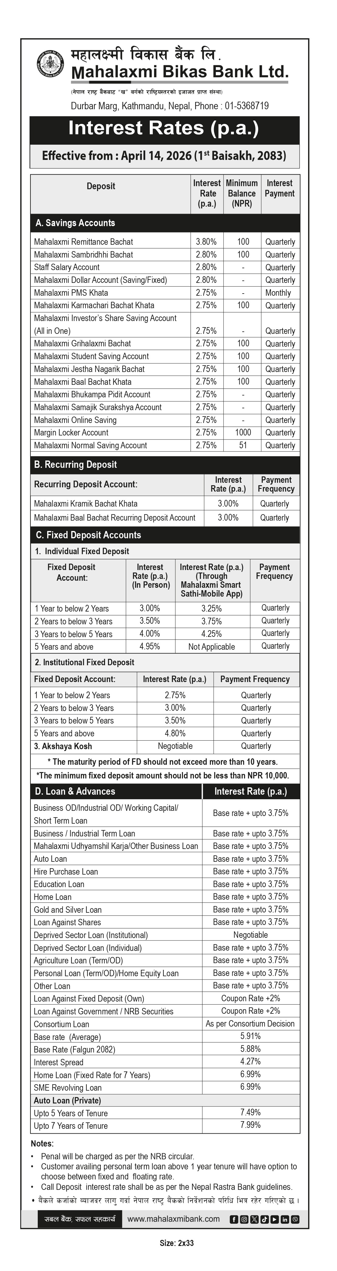 Interest Rates (p.a.) effective from April 14, 2026 (1st Baisakh, 2083)